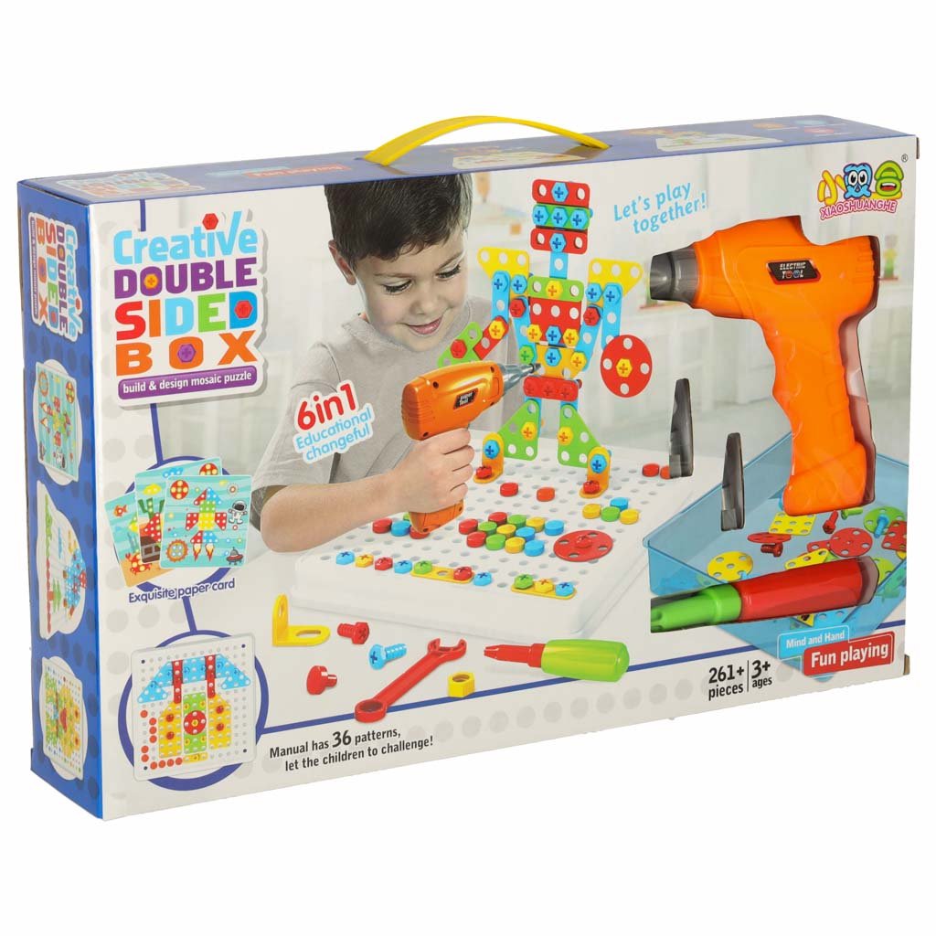 Šis spalvingas konstruktorius su elektriniu grąžtu ir varžtais leis vaikams kurti, statyti ir atrasti džiaugsmą konstruojant savo rankomis. Rinkinys puikiai tinka mažiesiems „pasidaryk pats“ entuziastams, norintiems lavinti kūrybiškumą ir rankų miklumą.
