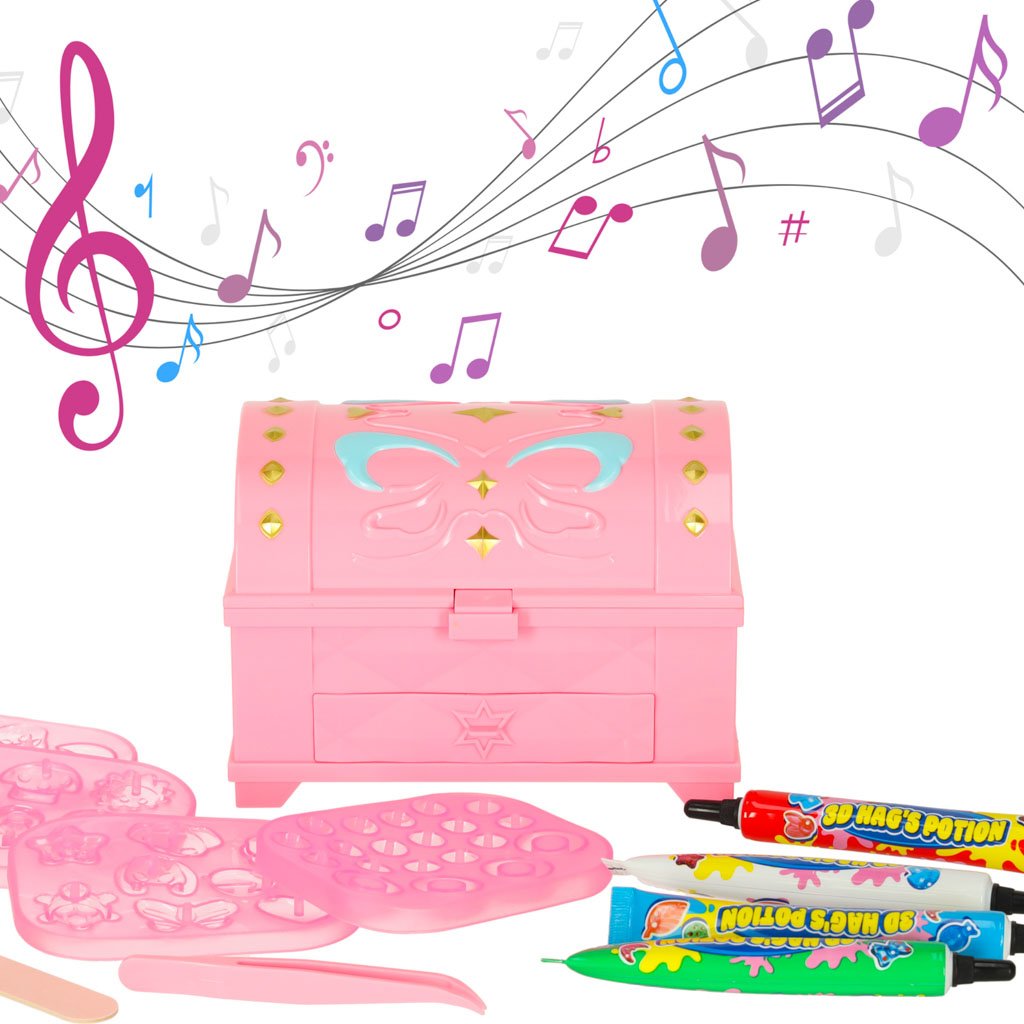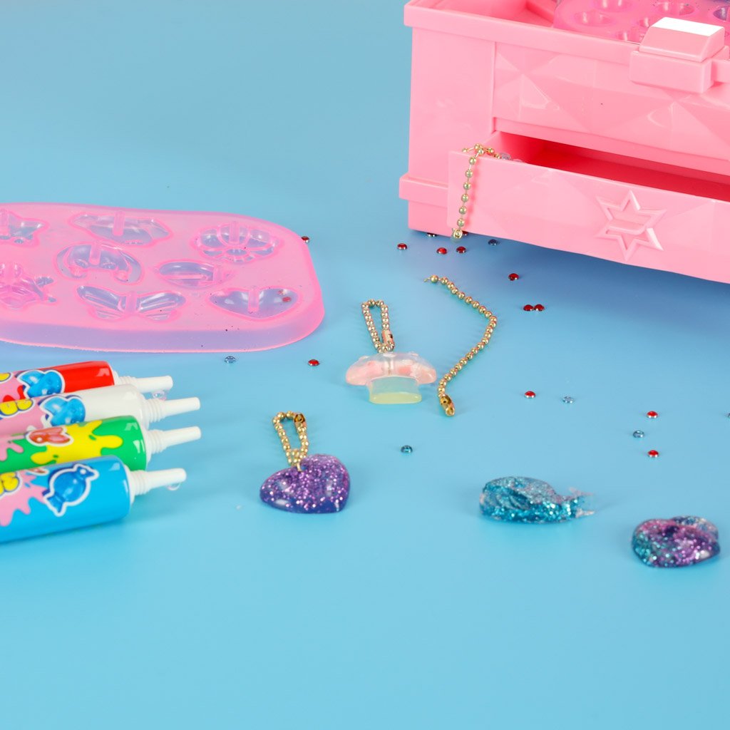 Tereikia pasirinkti formelę, įspausti spalvotų klijų, pagražinti blizgučiais ar kristalais – ir įdėti į „Magic Box“ UV dėžutę. Po vos 90 sekundžių, kai skamba linksma melodija, papuošalas sustingsta ir gali būti dėvimas ar dovanojamas!